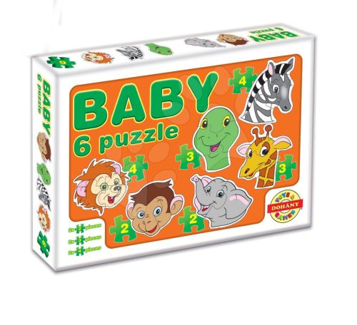 Gyermek puzzle Baby egzotikus állatok motívummal. A képkirkón csodaszép egzotikus állatok ábrája jelenik meg a csöppségek előtt, melyek a vadonban élik mindennapjaikat. A puzzle 18 darabos. A képkirakó darabjai összeillesztés után hat darab képet adnak ki. Puzzle minőségi alapanyagból készült. Megfelelnek a biztonsági előírásoknak, ezért is biztonságos játékot kínál a gyerkőcöknek. Ezeken a képkirakókon gyerekeknek szép és vidám képek jelennek meg a csöppségek előtt. Egyes puzzle elemek nagyobb méretekkel rendelkeznek a könnyebb manipuláció érdekében.