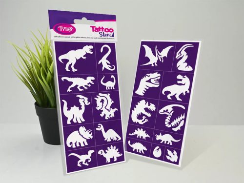 A csomagban legalább 20 különböző minta található, két nagy méretű íven (10cm x 20cm) elrendezve, így garantált a hosszú távú kreatív szórakozás. A sablonok két rétegűek, nem kell kivágni őket: egyszerűen csak le kell húzni az ívről, rásimítani a bőrre, és már indulhat is a festés vagy csillámporozás!