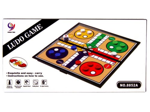 A doboz tartalma: mágneses játéktábla, 16 db bábu (4 színből 4-4 db), dobókocka.