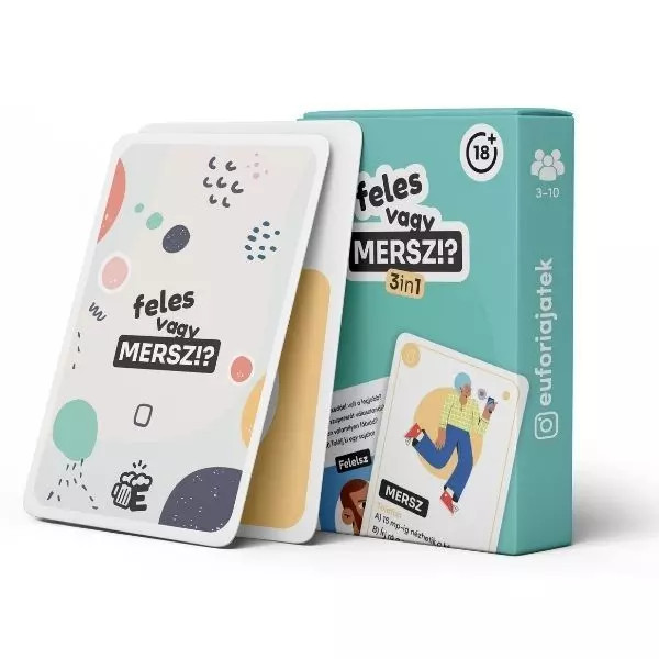 A Feles vagy Mersz!? megidézi az örök klasszikust, de mégis egy kicsit máshogyan. Ügy terveztük, hogy dinamikus és feledhetetlen játékélményt nyújtson, ezért egy paklival háromféleképpen is tudtok játszani, attól függően, milyen kedvetek van és hányan vagytok. Kitaláltunk egy játékmódot, amiben van győztes is, így fokozva az izgalmakat. Azonban, ha csak lazítani szeretnétek a játék kialakítása lehetővé teszi, hogy a gyermekkori emlékeket felidézve, játszatok egy memória játékot, miközben izgalmas feladatokkal szivatjátok a másikat.
